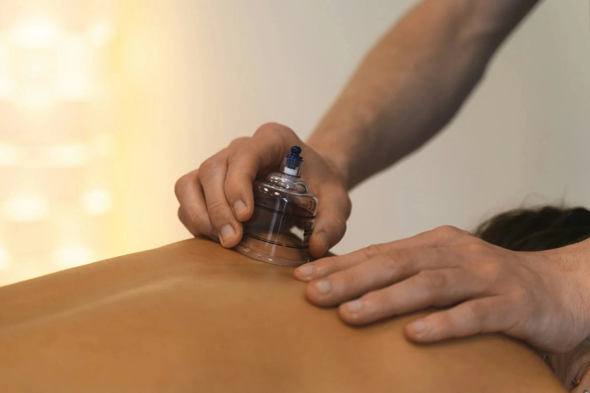 Cupping is a therapeutic technique in which specialized cups are applied to the skin to create negative pressure. This suction increases blood flow, and gently lifts the skin and underlying tissues to the targeted area, which helps improve mobility and address areas of restriction or discomfort. The technique is commonly used to address areas of tightness, discomfort, or limited mobility.Cupping treatments can sometimes leave temporary marks on the skin, such as redness or bruising. This is a normal response and happens because of increased blood flow to the area. These marks are usually not painful and typically fade within a few days to a week.